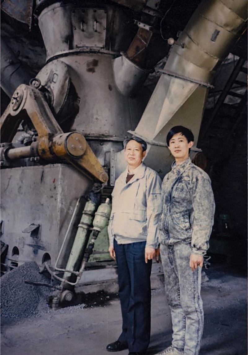 1989年,合肥院首臺自主開發的HRM1250原料立式磨成功投運,各項技術指標達到或超過設計要求,填補國內空白。該成果于1993年通過建材行業部級鑒定,達到國際先進水平,隨后榮獲“國家級新產品”、“國家優秀節能科技成果”和國家建筑材料工業局建材行業部級科技進步二等獎等一系列榮譽獎勵。圖為技術人員與院領導在該臺立式磨前合影